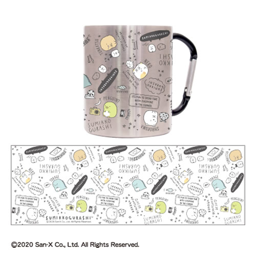 商品紹介: すみっコぐらしから、普段使いでもアウトドアでも大活躍な【カラビナ付きステンレスマグ】が新登場♪ 取っ手のカラビナを引っ掛けて、どこでも一緒に!